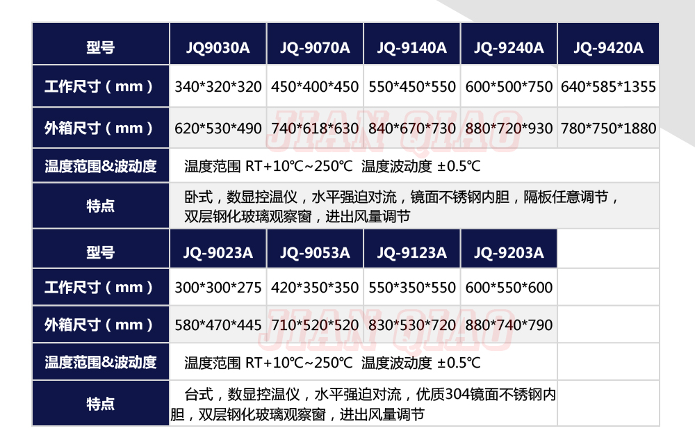 產品型號:JQ-9640 品牌:劍 喬 用途:精密高溫箱用于對電子電工、汽車摩托、航空航天橡膠、塑膠、金屬、船舶兵器、高等院校、科研單位等相關產品的零部件及材料在高溫恒溫變化的情況下,檢驗其各項性能指標。咨詢熱線:13829135130