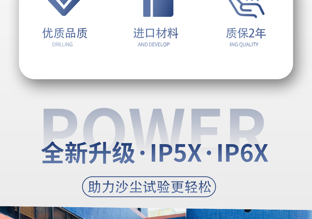 用途:防塵試驗箱適用于防護等級 (IP code), GB/T 4942.2-93(低壓設備防護等級),GB 7000.1(燈具防護等級),DIN40050和IP5K0等校準設計制造。SC-015應用于LED燈具和其它照明產品對IP5X和IP6X防塵等級測試。