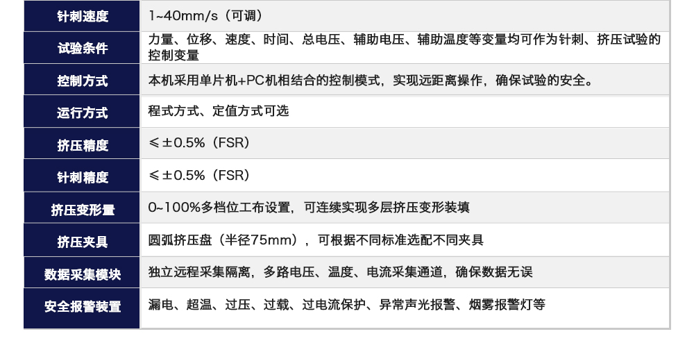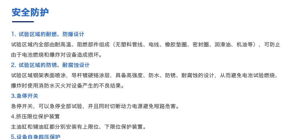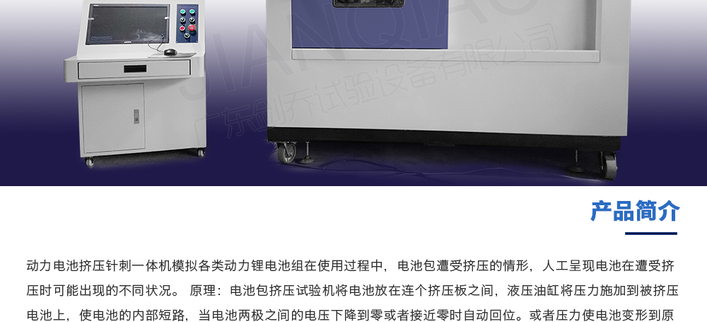 用途:動力電池擠壓針刺一體機模擬各類動力鋰電池組在使用過程中,電池包遭受擠壓的情形,人工呈現電池在遭受擠壓時可能出現的不同狀況。 原理:電池包擠壓試驗機將電池放在連個擠壓