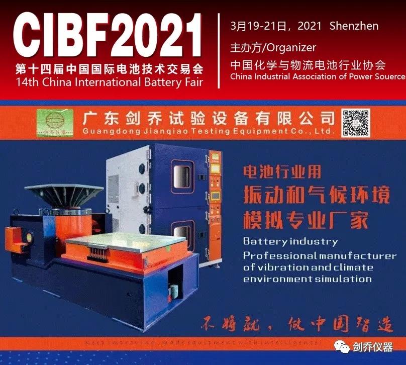 (CIBF2021)“第十四屆中國國際電池技術(shù)交流會/展覽會” 展覽面積99000平方米,展位數(shù)量達5000+個,預(yù)計參展商1300+家。CIBF2021展覽會將集中展示全球動力電池、儲能電池、3C電池、各種電池材料、制造設(shè)備、動力及儲能系統(tǒng)解決方案,不僅展示近兩年來我國在各種乘用車、新能源客車及物流車用動力電池領(lǐng)域和新能源儲能領(lǐng)域的一系列成果,也是各動力電池生產(chǎn)企業(yè)和整車制造企業(yè)了解動力電池最新測試、開發(fā)和驗證技術(shù)的理想場合,在此【劍喬儀器】誠摯邀請您蒞臨參觀指導(dǎo)!